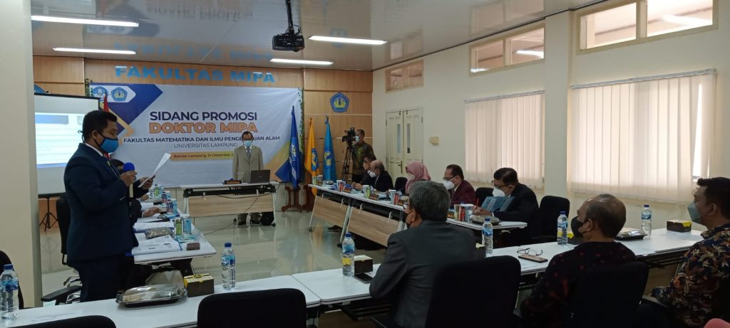 Sidang promosi ini merupakan sidang promosi perdana yang dilaksanakan oleh Prodi Doktro MIPA.  Sidang dipimpin oleh Wakil Rektor Bidang Akademik dan Kerjasama Universitas Lampung, Prof. Dr. Heryandi, S.H.,  M.S.  sebagai Ketua Sidang dan Dekan FMIPA, Dr. Suripto Dwi Yuwono, S.Si.,  M.Si. sebagai Sekretaris Sidang.